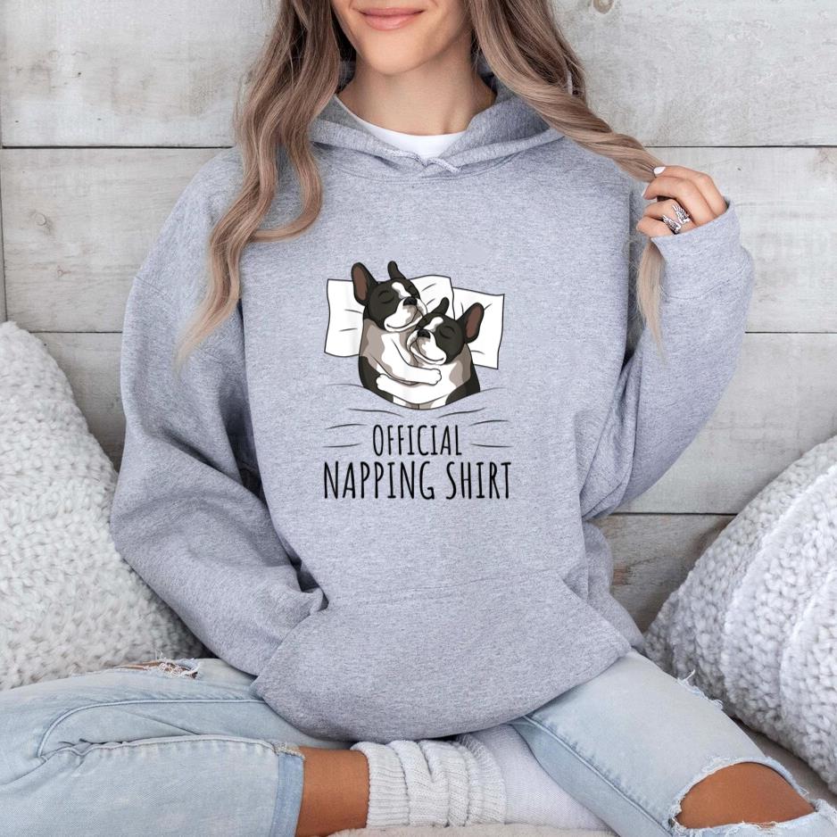 The Boston Terrier Dog Official Napping Hoodie hoodie combines comfort warmth and style for a go anywhere piece that works in any season. Soft inside and durable outside it is perfect for layering or lounging