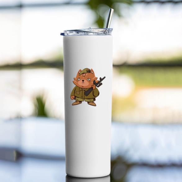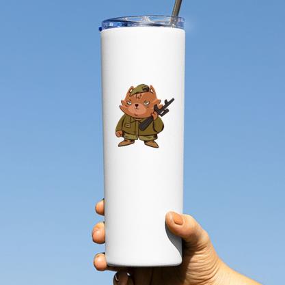 Keep your drinks hot or cold with the Cartoon Cat In A Military Uniform Holding A Gun Tumbler tumbler. Made for daily use at home work or on the go this insulated tumbler is your new favorite companion