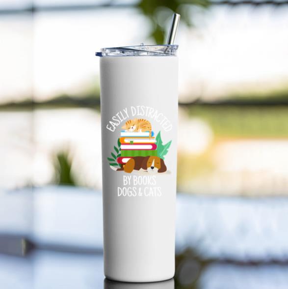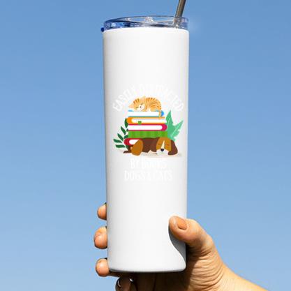 Keep your drinks hot or cold with the Easily Distracted By Dogs Cats And Books Tumbler tumbler. Made for daily use at home work or on the go this insulated tumbler is your new favorite companion